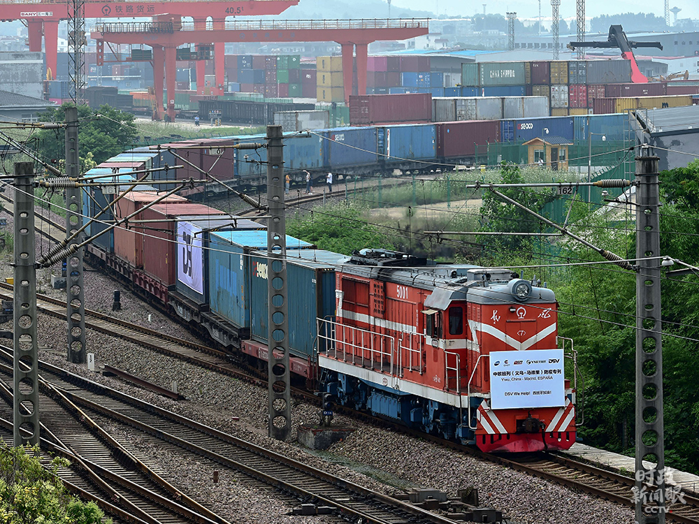 △6月5日,滿載防疫物資的中歐班列在浙江義烏西站啟程,經(jīng)由新疆阿拉山口口岸出境,前往西班牙首都馬德里。