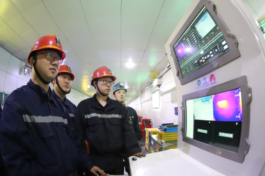 機(jī)電硐室燈光明亮,在一段120米的頭頂軌道上,一個(gè)小小的5G機(jī)器人正在來回移動(dòng),進(jìn)行360度視頻監(jiān)測(cè)、音頻采集、紅外熱成像。“這是無人巡檢機(jī)器人,還能精準(zhǔn)記錄設(shè)備故障發(fā)生的時(shí)間、地點(diǎn)以及參數(shù)。通過5G網(wǎng)絡(luò)回傳到數(shù)據(jù)中心?!毙略旱V5G智能化辦公室主任冀杰說,原來配電室都是靠人檢查,憑的是經(jīng)驗(yàn);但機(jī)器可以24小時(shí)巡查,不是人力可以比的?!把矙z機(jī)器人代替人在井下巡檢的意義在于,可以逐步實(shí)現(xiàn)井下減人、少人,實(shí)現(xiàn)煤礦安全生產(chǎn)和效益雙贏?!?/span>