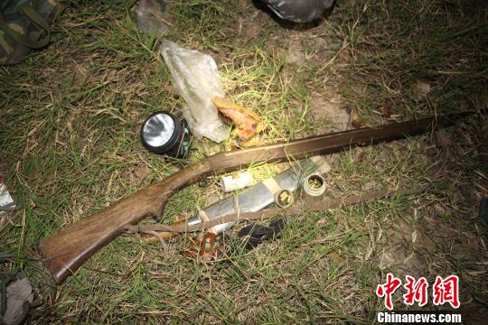 3月27日凌晨,云南省西雙版納州森林公安局勐臘派出所的民警接到群眾匿名電話(huà)報(bào)案稱(chēng):“在勐臘縣南貢山國(guó)家級(jí)自然保護(hù)區(qū)內(nèi)有人在打獵”。接到報(bào)案后,勐臘派出所立即組織民警前往案發(fā)地點(diǎn)調(diào)查。凌晨1時(shí),民警剛到山腳,就聽(tīng)到了山上的保護(hù)區(qū)內(nèi)傳來(lái)槍響。隨即,民警在進(jìn)出保護(hù)區(qū)的出入口秘密布控,等待狩獵者歸來(lái)。隨著時(shí)間一分一秒的流逝,在出入口蹲守了近一個(gè)小時(shí)后,民警仍然沒(méi)有發(fā)現(xiàn)狩獵人員蹤跡,甚至連槍聲都沒(méi)有再響過(guò)。為了防止狩獵人員從其它出口逃離,民警決定兵分兩路,一組人繼續(xù)在出口蹲守,另一組人進(jìn)入保護(hù)區(qū)搜查狩獵者蹤跡。因擔(dān)心狩獵者看到亮光躲藏起來(lái),進(jìn)入保護(hù)區(qū)的搜查組民警關(guān)閉手電,摸黑進(jìn)山搜查。