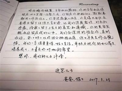 這是許峰的母親丁阿姨3月23日寫下的日記,“我怕我老了,記不住了,把對兒子的思念都寫在日記里,以后也能看見。”