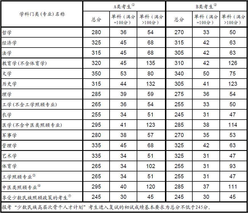 ⑥臨床醫(yī)學(xué)[1051]、⑦口腔醫(yī)學(xué)[1052]、⑧中醫(yī)[1057]專業(yè): 根據(jù)相關(guān)規(guī)定,“招生單位自主確定并對(duì)外公布報(bào)考本單位臨床醫(yī)學(xué)類專業(yè)學(xué)位碩士研究生進(jìn)入復(fù)試的初試成績(jī)要求,以及接受報(bào)考其他單位臨床醫(yī)學(xué)類專業(yè)學(xué)位碩士研究生調(diào)劑的成績(jī)要求。教育部劃定臨床醫(yī)學(xué)類專業(yè)學(xué)位碩士研究生初試成績(jī)基本要求供招生單位參考,同時(shí)作為報(bào)考臨床醫(yī)學(xué)類專業(yè)學(xué)位碩士研究生的考生調(diào)劑到其他專業(yè)的基本成績(jī)要求?!?/p>