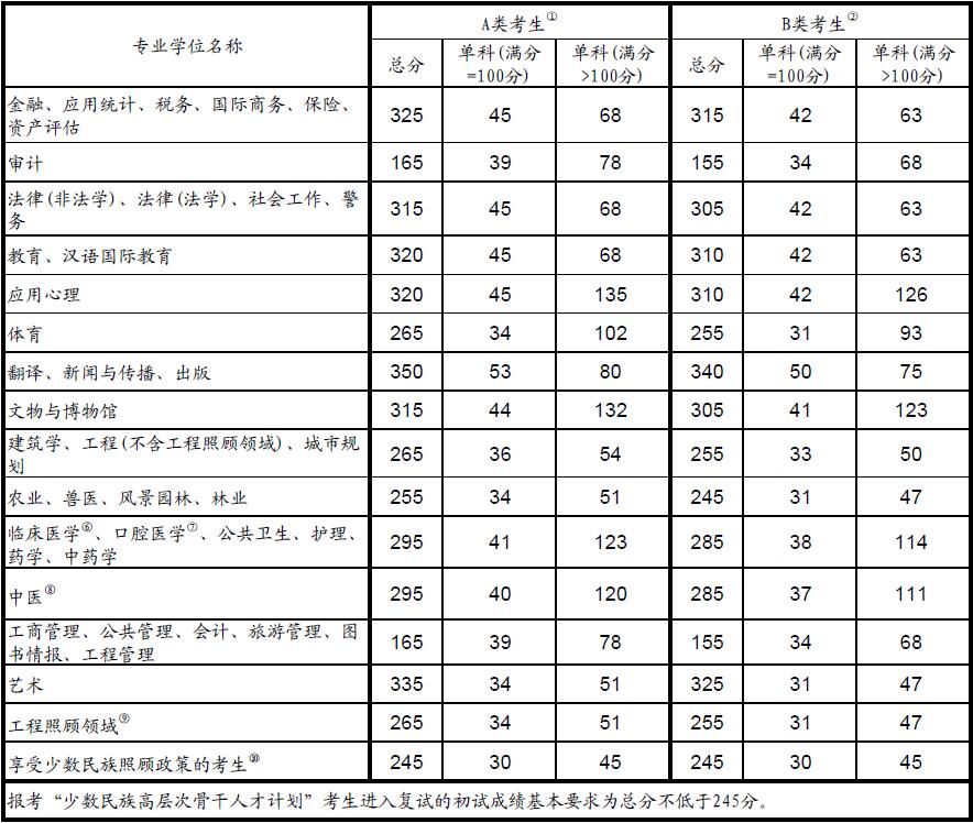 2016年全國(guó)碩士研究生招生考試考生進(jìn)入復(fù)試的初試成績(jī)基本要求(專業(yè)學(xué)位類)