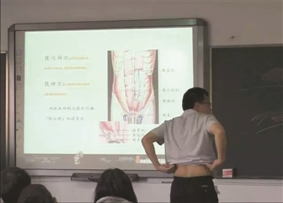 “老師,你知道你火了嗎?網(wǎng)上全是你的解剖動(dòng)作展示,還有你寫在手臂上的肌肉名稱。”最近,南京醫(yī)科大學(xué)師生“朋友圈”被解剖學(xué)教師李雷的“清涼照片”刷屏。照片中,李雷撩起衣服,以身體為道具向?qū)W生講解各個(gè)部位及肌肉名稱。揚(yáng)子晚報(bào)記者聯(lián)系上李雷,他哈哈一笑:“現(xiàn)在最火的是我的學(xué)生紫薇,她的‘蓋世麒麟臂’讓我震驚了!”
