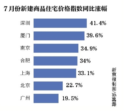 國(guó)家統(tǒng)計(jì)局?jǐn)?shù)據(jù)顯示:7月份廈門(mén)新建商品住宅價(jià)格指數(shù)較上月環(huán)比增長(zhǎng)4.6%,較去年同比漲幅達(dá)39.6%。