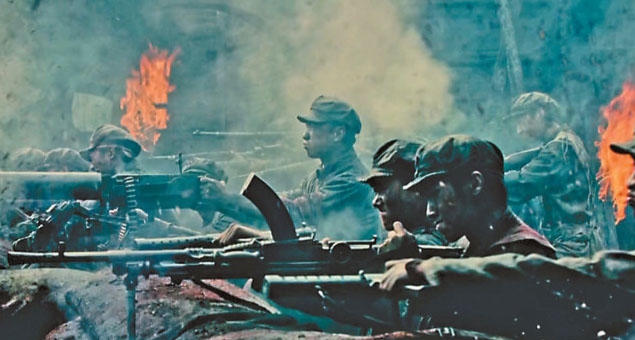 在《浴血榮光》中,陳力導(dǎo)演延續(xù)了其真實(shí)厚重、沉郁激越的影像風(fēng)格,讓影像深度參與敘事,劇集對于不同的場景敘事采用了不同的影像風(fēng)格。南昌起義、三壩河阻擊戰(zhàn)、井岡山叢林游擊戰(zhàn)等戰(zhàn)斗大場面,炮火紛飛、震撼人心;而與家庭相關(guān)的影像則趨向溫暖動(dòng)人。