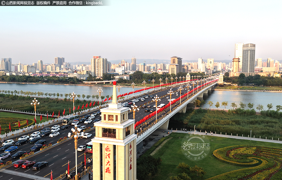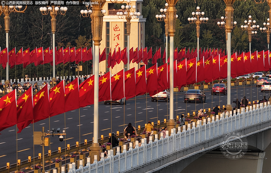 山西太原:迎澤橋 “中國紅”引打卡 國慶氛圍拉滿