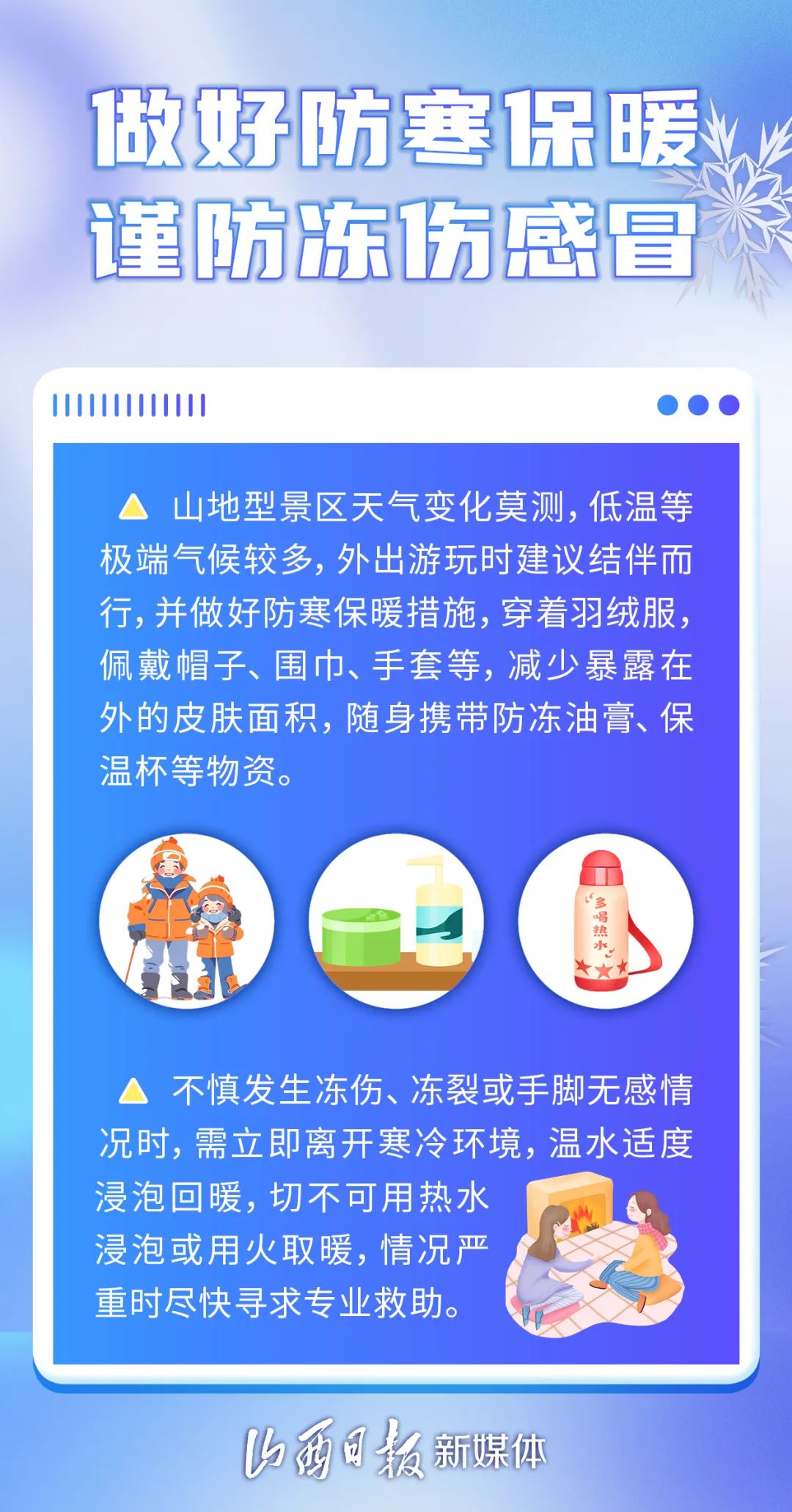 雪花裝點(diǎn)了世界,同時(shí),也為出行帶來了安全隱患。下面是雪天安全出游的小常識(shí),請(qǐng)仔細(xì)閱讀。