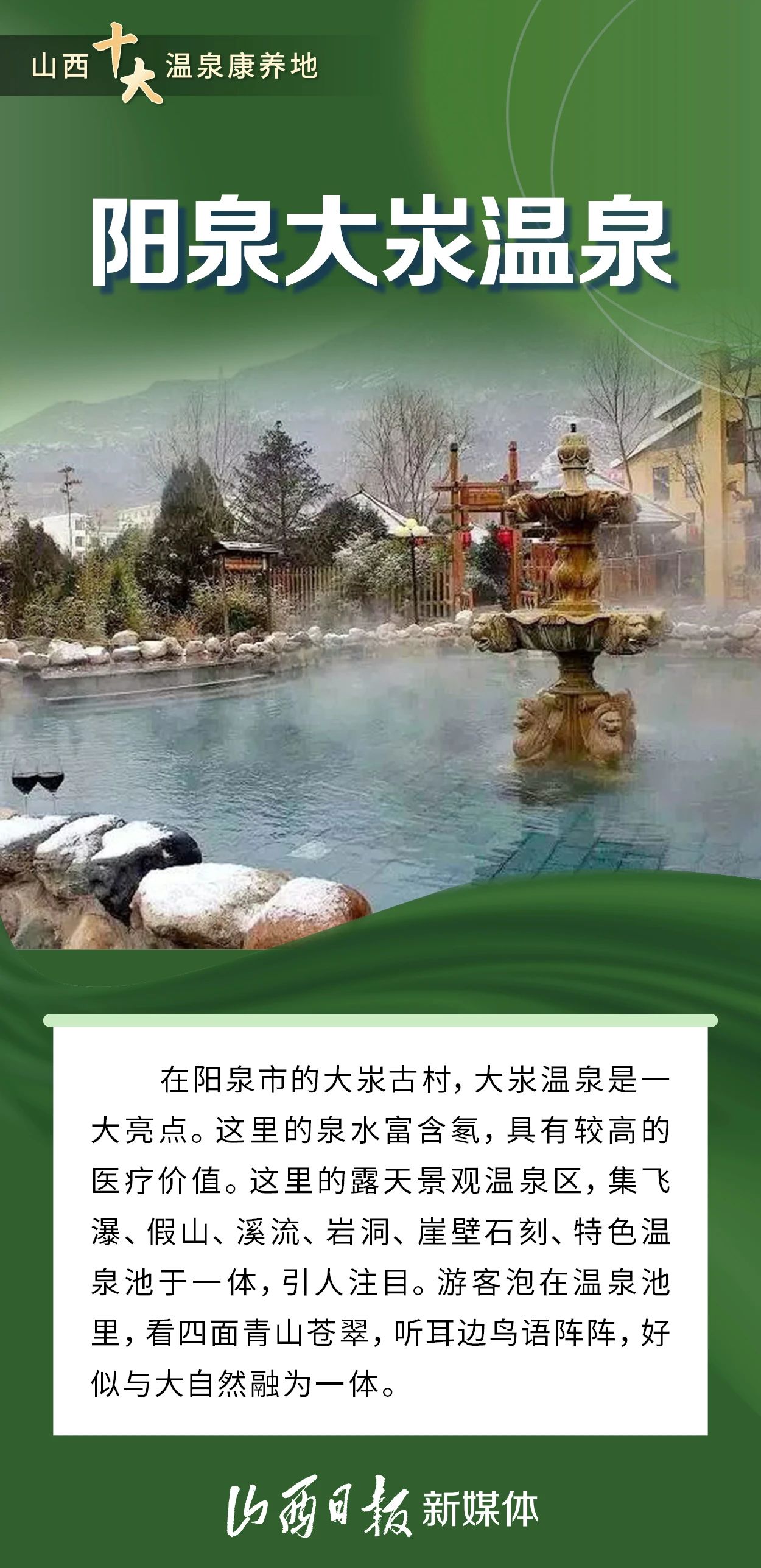 寒冷的冬天里,“泡溫泉”成為康養(yǎng)旅游的首選。山西省文旅廳近日發(fā)布的“十大溫泉康養(yǎng)地”,邀請游客沐浴溫泉、洗去疲憊,感受山西冬日特色康養(yǎng)產(chǎn)品的魅力。