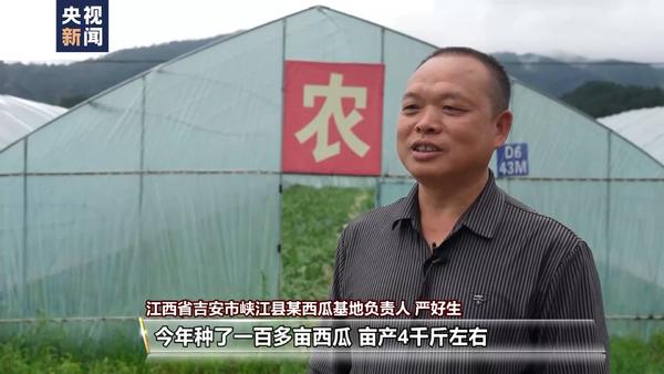 江西省吉安市峽江縣某西瓜基地負責(zé)人 嚴好生:今年種了一百多畝西瓜,畝產(chǎn)4千斤左右,預(yù)計總產(chǎn)值在40萬以上。