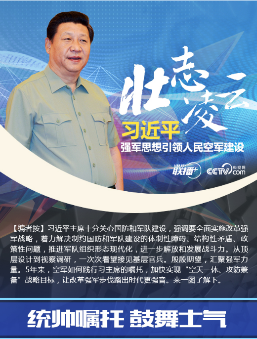 【聯(lián)播+】5年前的4月14日,中共中央總書記、國家主席、中央軍委主席習(xí)近平專程到空軍機關(guān)調(diào)研空軍建設(shè)和軍事斗爭準備,代表黨中央、中央軍委向空軍全體官兵致以誠摯的問候,強調(diào)要加快建設(shè)一支空天一體、攻防兼?zhèn)涞膹姶笕嗣窨哲?,為實現(xiàn)中國夢、強軍夢提供堅強力量支撐。