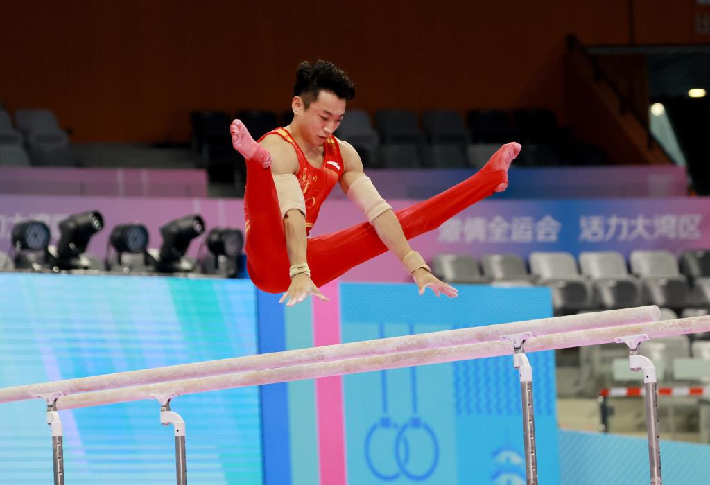 9月9日,鄒敬園在中國國家男子體操隊2025年世界體操錦標賽第二次選拔測驗賽中。新華社發(fā)(劉春林攝)