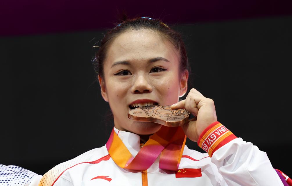 10月23日,張清穎在女子個(gè)人全能頒獎(jiǎng)儀式上。新華社記者 白雪飛 攝