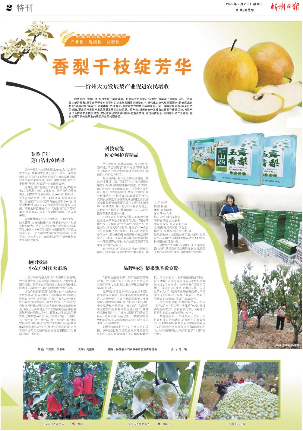 時(shí)值仲秋,白露已過(guò),忻州大地上梨香陣陣。忻府區(qū)蘭村鄉(xiāng)河習(xí)頭村的千畝梨園已是碩果壓枝,一片豐收在望的景象;原平市子干鄉(xiāng)東南賈村的標(biāo)準(zhǔn)化梨園基地規(guī)整有序,現(xiàn)代化農(nóng)業(yè)氣息撲面而來(lái);忻府區(qū)北趙村的“老李君睞”梨園中,紅梨滿枝,色澤鮮亮,展現(xiàn)著特色種植的豐碩成果。這一幅幅金秋畫(huà)卷,既是自然的饋贈(zèng),更是忻州市梨產(chǎn)業(yè)高質(zhì)量發(fā)展的生動(dòng)見(jiàn)證。近年來(lái),忻州市充分發(fā)揮自然稟賦和傳統(tǒng)優(yōu)勢(shì),將梨產(chǎn)業(yè)作為推動(dòng)農(nóng)業(yè)提質(zhì)增效、農(nóng)民增收致富和鄉(xiāng)村振興的重要支柱,通過(guò)科技驅(qū)動(dòng)、品牌建設(shè)和產(chǎn)業(yè)融合,穩(wěn)步實(shí)現(xiàn)了從傳統(tǒng)果業(yè)向現(xiàn)代產(chǎn)業(yè)的轉(zhuǎn)型升級(jí)。