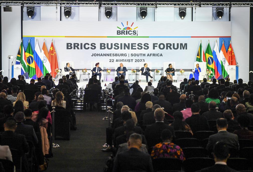 這是2023年8月22日在南非約翰內斯堡拍攝的金磚國家工商論壇現(xiàn)場。新華社記者李亞輝攝