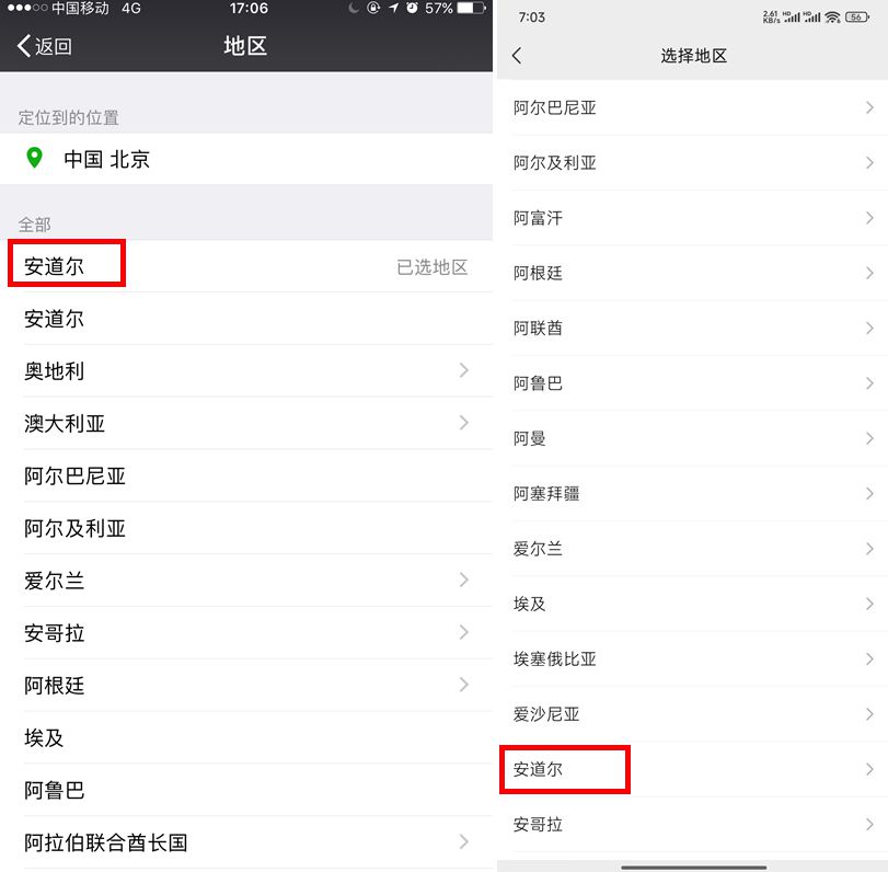 很多人在注冊微信的時候,沒在列表中翻找自己真正的所在地,微信就默認(rèn)選擇了排在第一的安道爾。