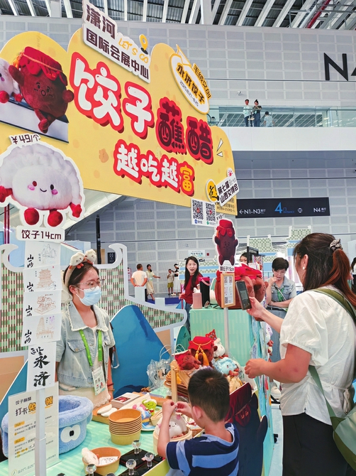 胖乎乎的餃子、圓墩墩的醋缸,摸一摸,毛絨絨的,手感柔順細(xì)滑。8月24日,第七屆山西文博會(huì)現(xiàn)場(chǎng),位于山西瀟河國(guó)際會(huì)展中心N4館的文創(chuàng)山西展區(qū),永濟(jì)市晉韻原創(chuàng)文創(chuàng)工作室獨(dú)特而醒目的門頭——“餃子蘸醋 越吃越富”,吸引了眾多參觀者的目光。該工作室展出的餃子蘸醋系列毛絨文創(chuàng)產(chǎn)品,也受到參觀者的關(guān)注和喜愛。