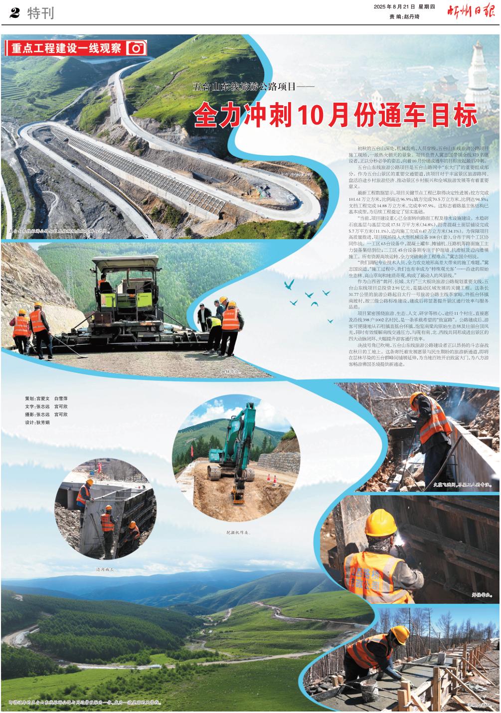 初秋的五臺山深處,機械轟鳴,人員穿梭,五臺山東線旅游公路項目施工現(xiàn)場,一派熱火朝天的景象。項目負責人冀志國帶領(lǐng)全線373名建設(shè)者,正以分秒必爭的姿態(tài),向著10月份建成通車的目標發(fā)起最后沖刺。