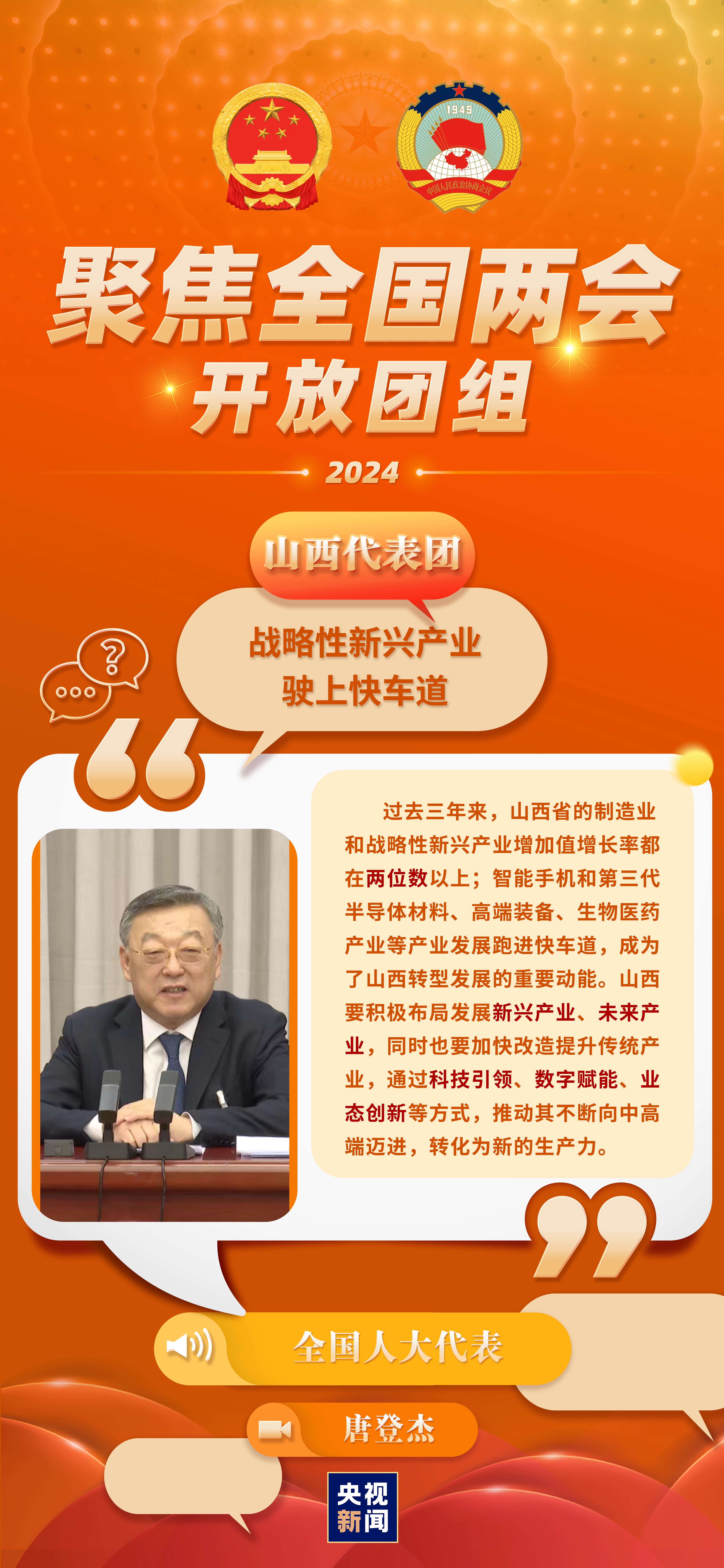今天(3月6日)下午3點(diǎn),山西代表團(tuán)舉行開放團(tuán)組活動。2023年,山西省地區(qū)生產(chǎn)總值為25698.18億元,增長5.0%,其中第二產(chǎn)業(yè)增長5.1%,對經(jīng)濟(jì)增長的貢獻(xiàn)率更是高達(dá)46.4%。山西提出,到2030年基本完成資源型經(jīng)濟(jì)轉(zhuǎn)型任務(wù)。