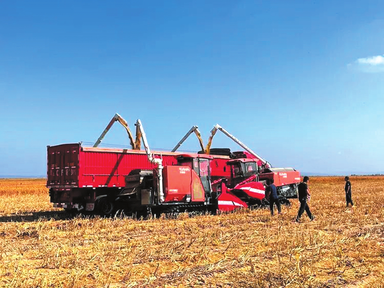 “以前收谷子全靠人工,2000畝地得雇上百號人干半個(gè)來月,現(xiàn)在,安裝有北斗導(dǎo)航系統(tǒng)的新型收割機(jī),省時(shí)省力還省錢。這些新型收割機(jī)定位精度高,不僅能避免漏割、重割,還能根據(jù)作物長勢自動(dòng)調(diào)節(jié)收割高度,作業(yè)效率提高了兩倍多。”久盛農(nóng)牧業(yè)發(fā)展有限公司負(fù)責(zé)人許智光說。