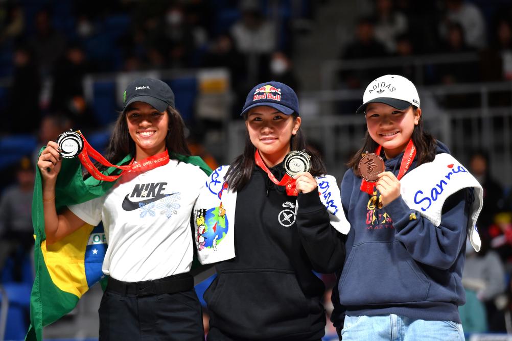 男子前三被日本選手包攬。白井空良、根附海龍和東京奧運(yùn)會冠軍堀米雄斗分別獲得金、銀、銅牌。