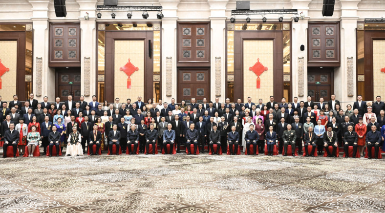 代表中,“七一勛章”獲得者魏德友和買買提江·吾買爾、“人民衛(wèi)士”巴依卡·凱力迪別克、“人民楷?!辈既悻敽埂っ斩湔驹诘谝慌?。胸前的勛章光燦燦、沉甸甸。