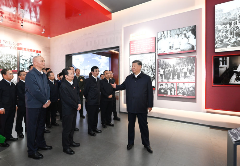 24日上午,習近平總書記來到烏魯木齊文化中心展覽館,參觀新疆維吾爾自治區(qū)成立70周年主題成就展。自治區(qū)成立時的歷史視頻,十月拖拉機廠生產的第一批拖拉機,打贏脫貧攻堅戰(zhàn)的新舊對比照片……總書記認真聽取講解,不時駐足察看。