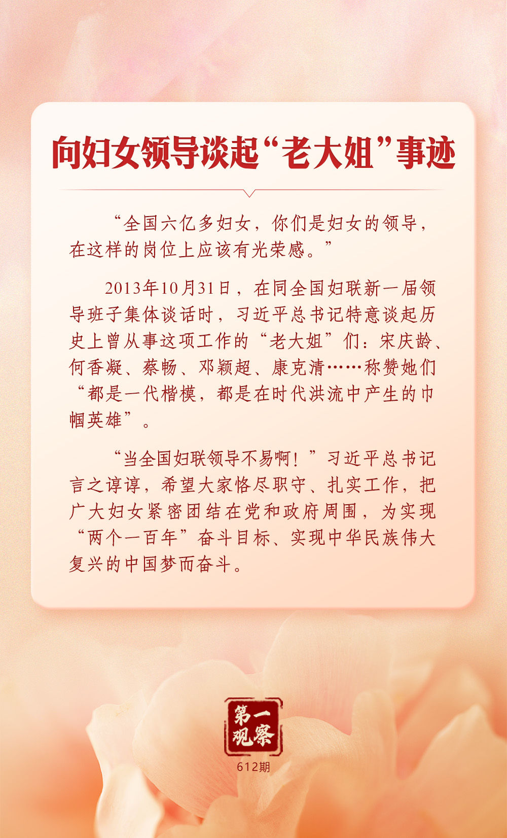 習(xí)近平總書記始終心系婦女事業(yè)發(fā)展。在全球婦女峰會(huì)即將召開之際,讓我們一道深刻體悟這份一以貫之的牽掛與重視。